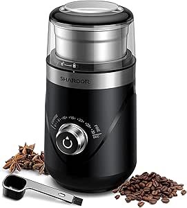 ارتقِ بتجربة قهوتك مع مطحنة القهوة الكهربائية القابلة للتعديل من SHARDOR. إنها هادئة جداً، مزودة بوظيفة حفظ الوقت وكوب متعدد الاستخدامات من الفولاذ المقاوم للصدأ لطحن التوابل والأعشاب والمكسرات.